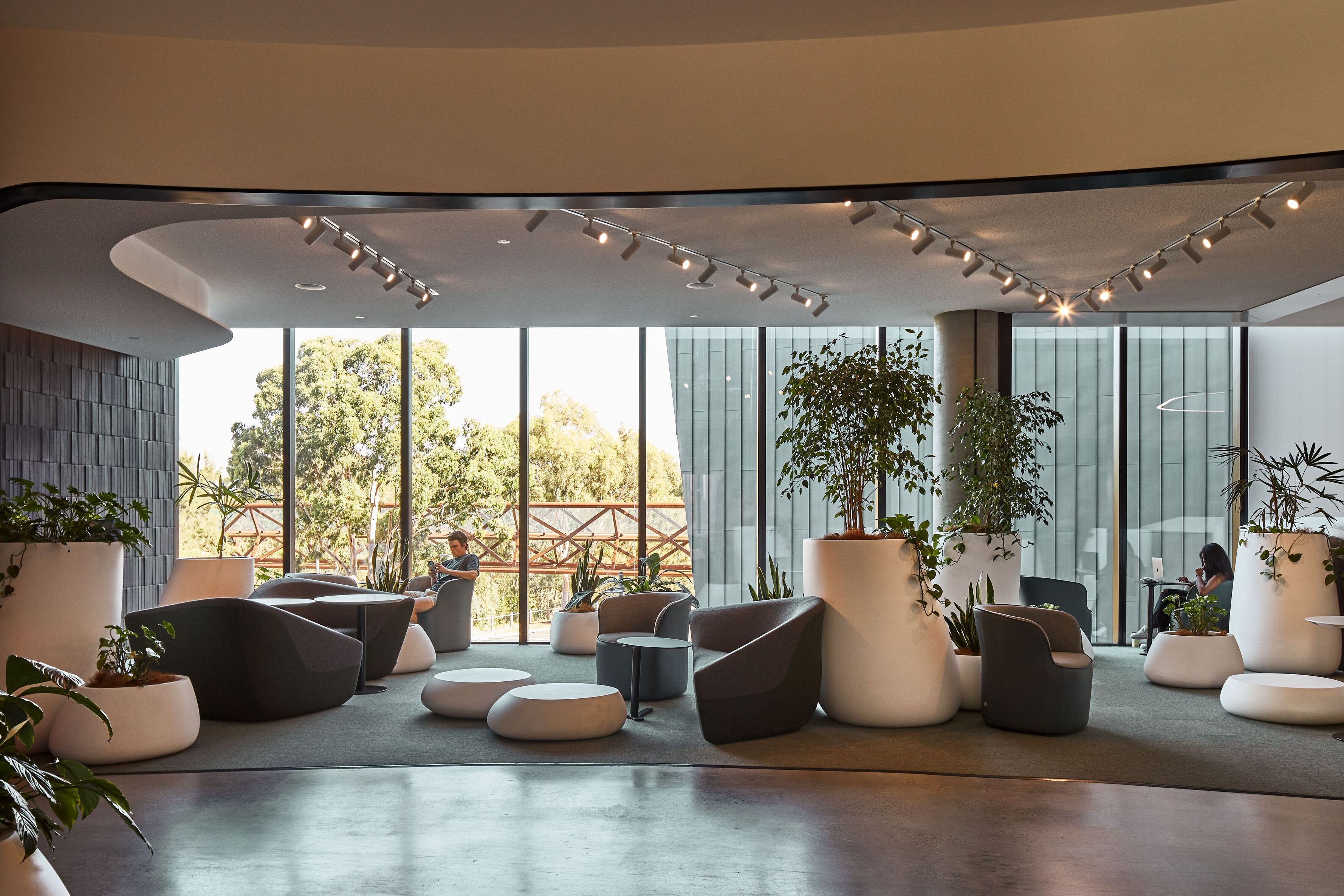 Located on the fifth floor, a calming winter garden is flooded with light thanks to floor-to-ceiling glass louvers. Our Seating Stones Armchairs, designed by UNStudio/Ben van Berkel for Walter K., invite students to enjoy moments of retreat and contemplation, while also providing a link with the outside thanks to their nature-inspired form.
