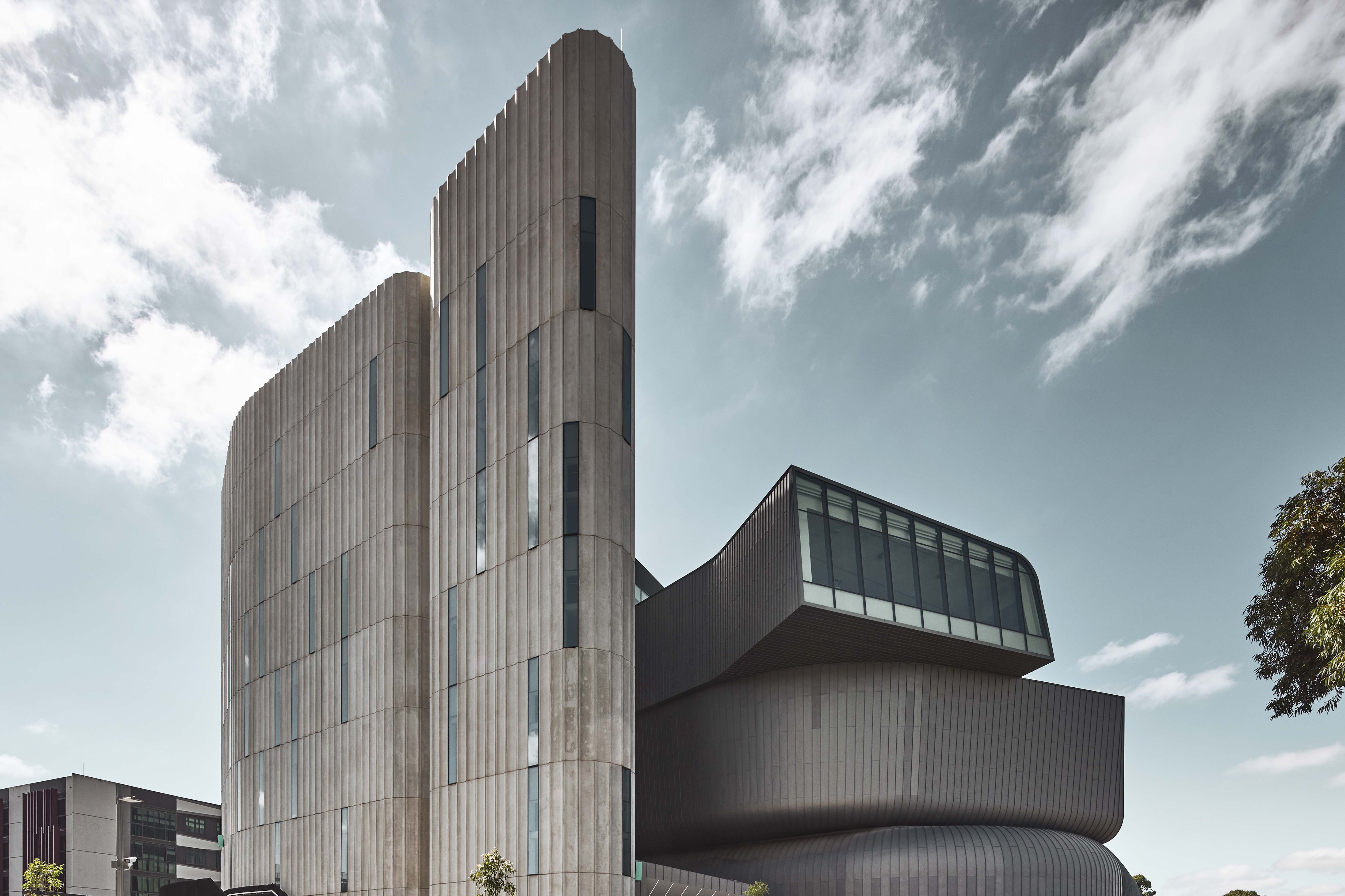 A striking new campus building has been designed by architecture practice Woods Bagot for Deakin Law School in Melbourne. A trio of stacked, zinc-clad volumes in contrasting shapes, a fluted concrete tower, and a rectangular glass structure combine to unique effect, enabling students to learn in a high-quality environment tailored to their needs.
