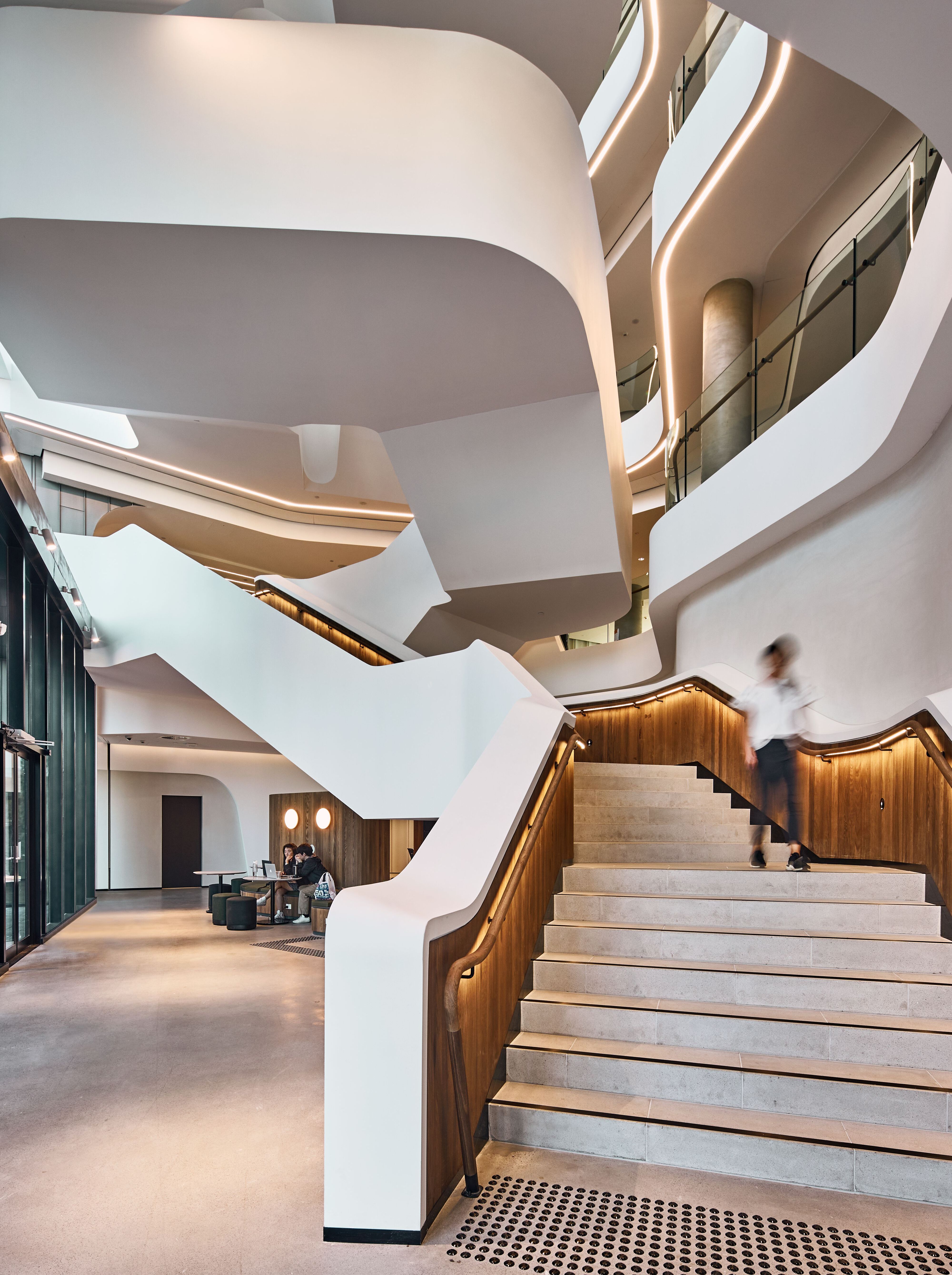 An awe-inspiring building reveals state-of-the-art interiors, designed to support the well-being of students as much as their academic education.