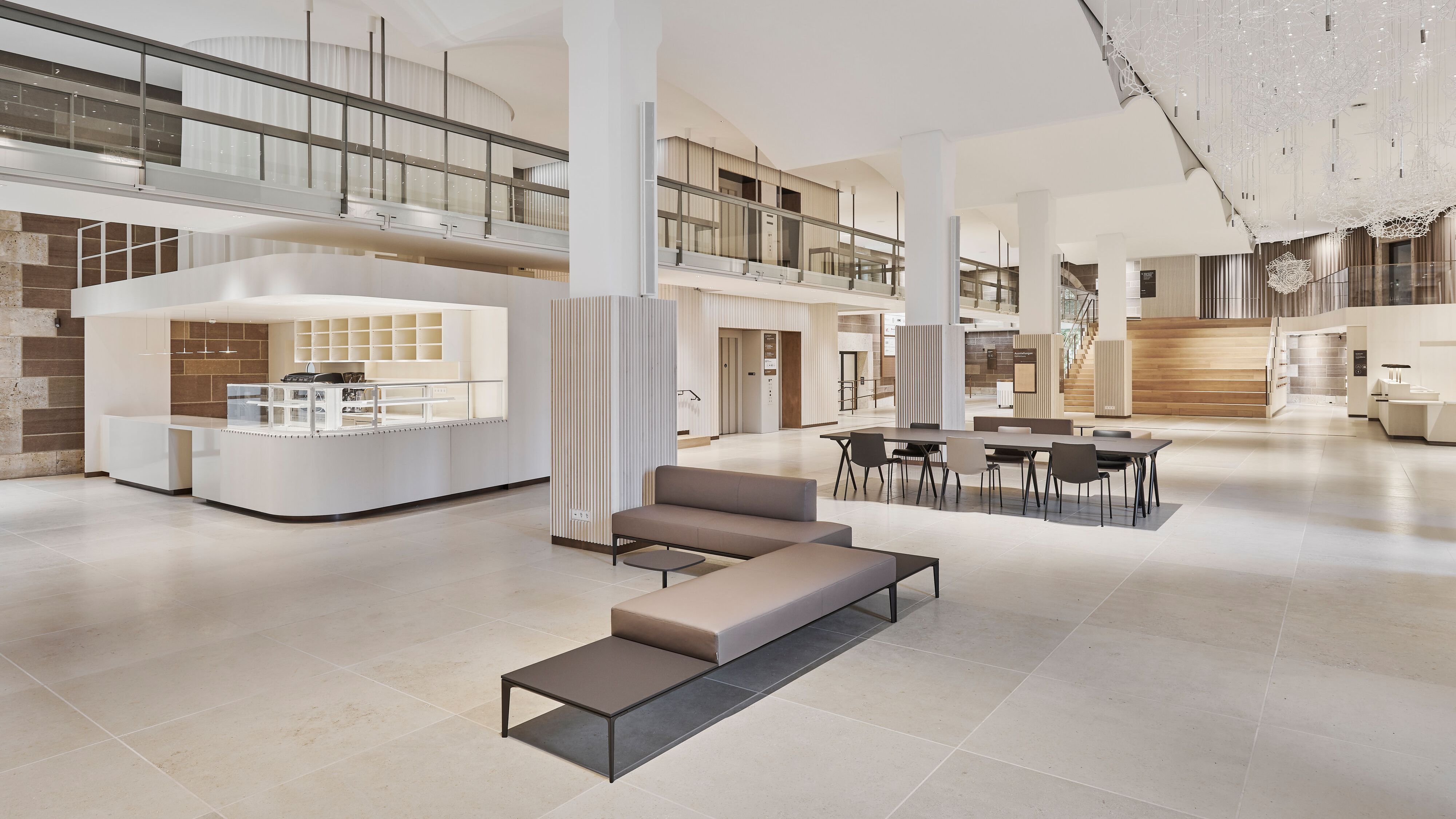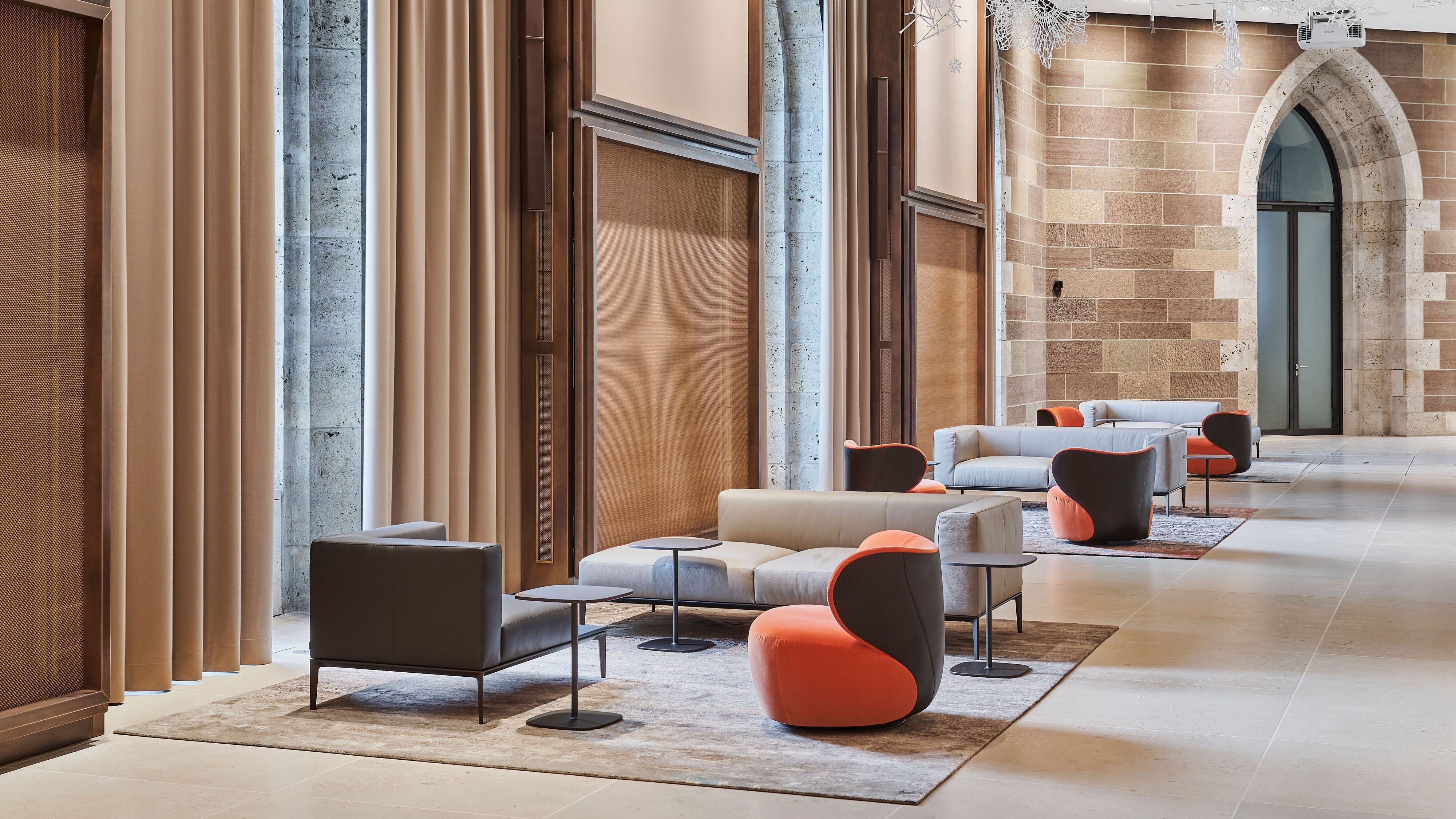 Experience the materials and furniture selected for the café, lounge and shop in the new museum foyer of the Württemberg State Museum in Stuttgart's historic Old Castle.