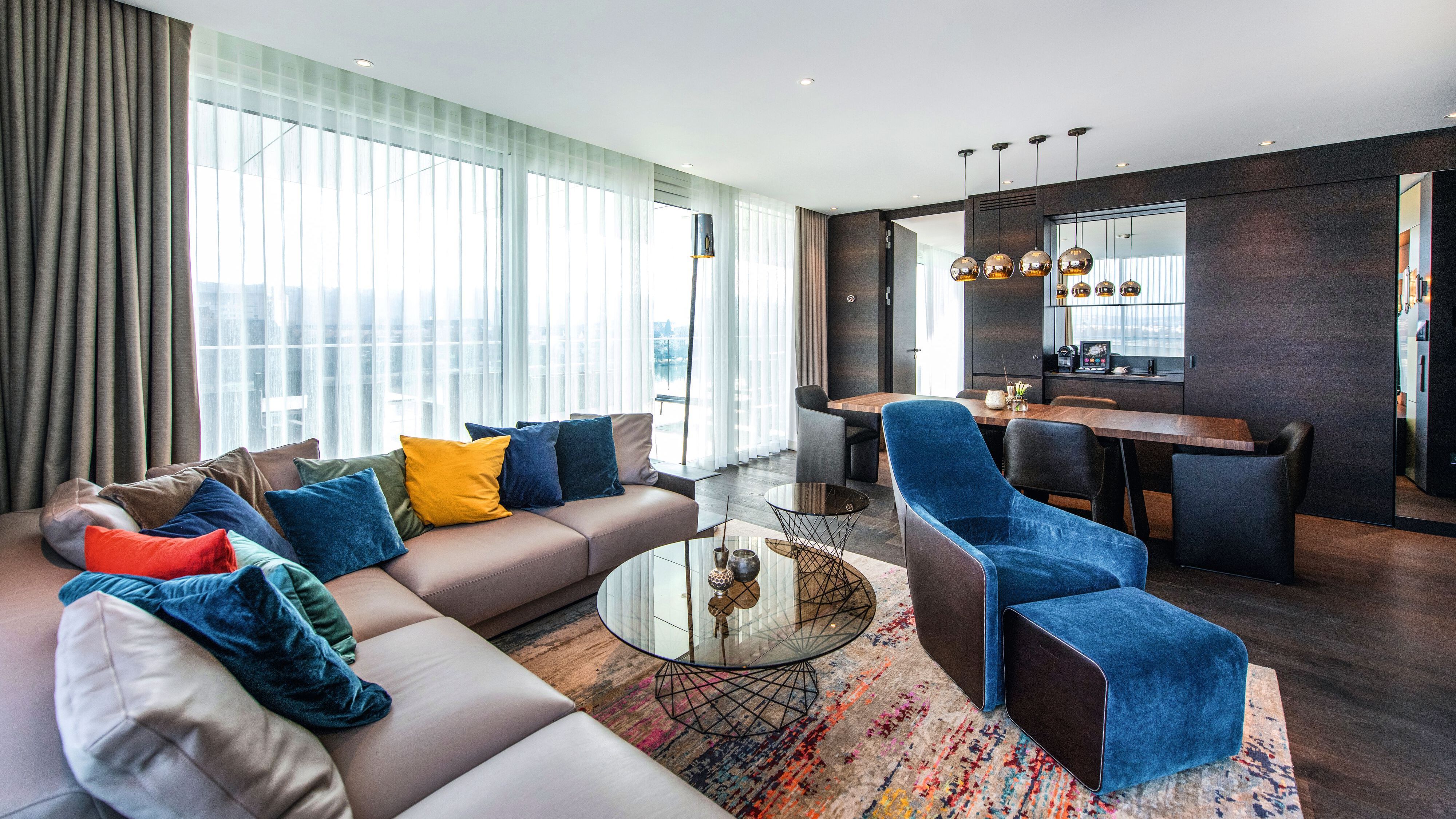 Walter K. Tadeo tables were the perfect choice for the restaurant, remade in smaller proportions especially for this project. The timeless 375 armchairs were upholstered in new fabrics designed to stand up to the demands of hotel usage while retaining a luxurious feel. The biggest challenge was to integrate technology into the rear panel of the Yuuto bed for the penthouse suite. The specialists from Walter K. succeeded here as well.