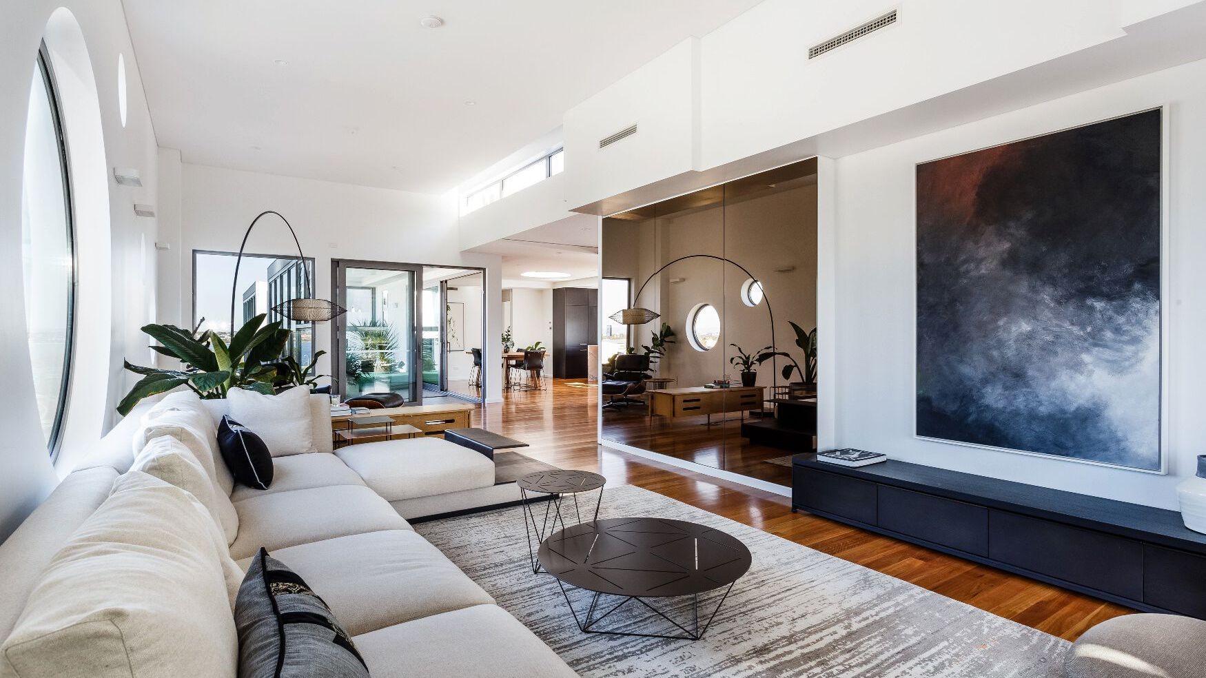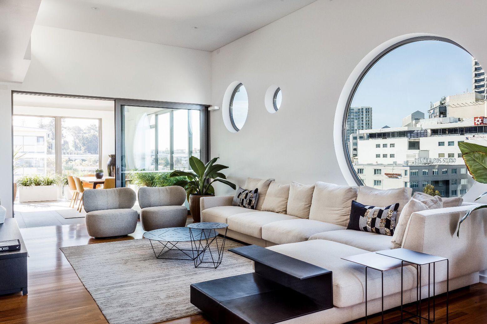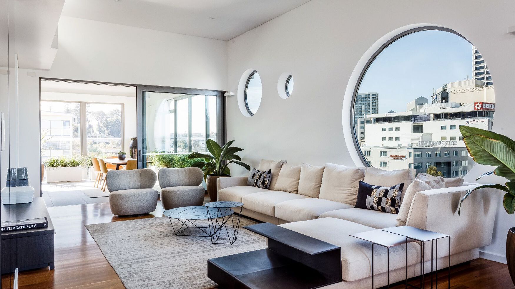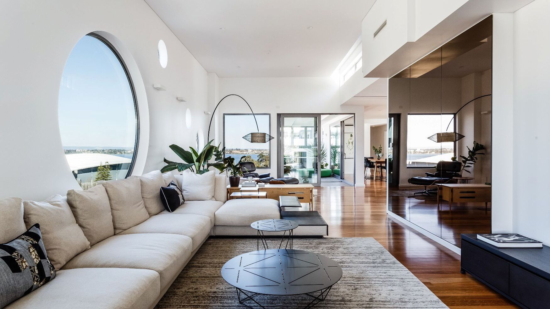 Designer furniture, art and circular windows make for exclusive contemporary living in a Perth penthouse.