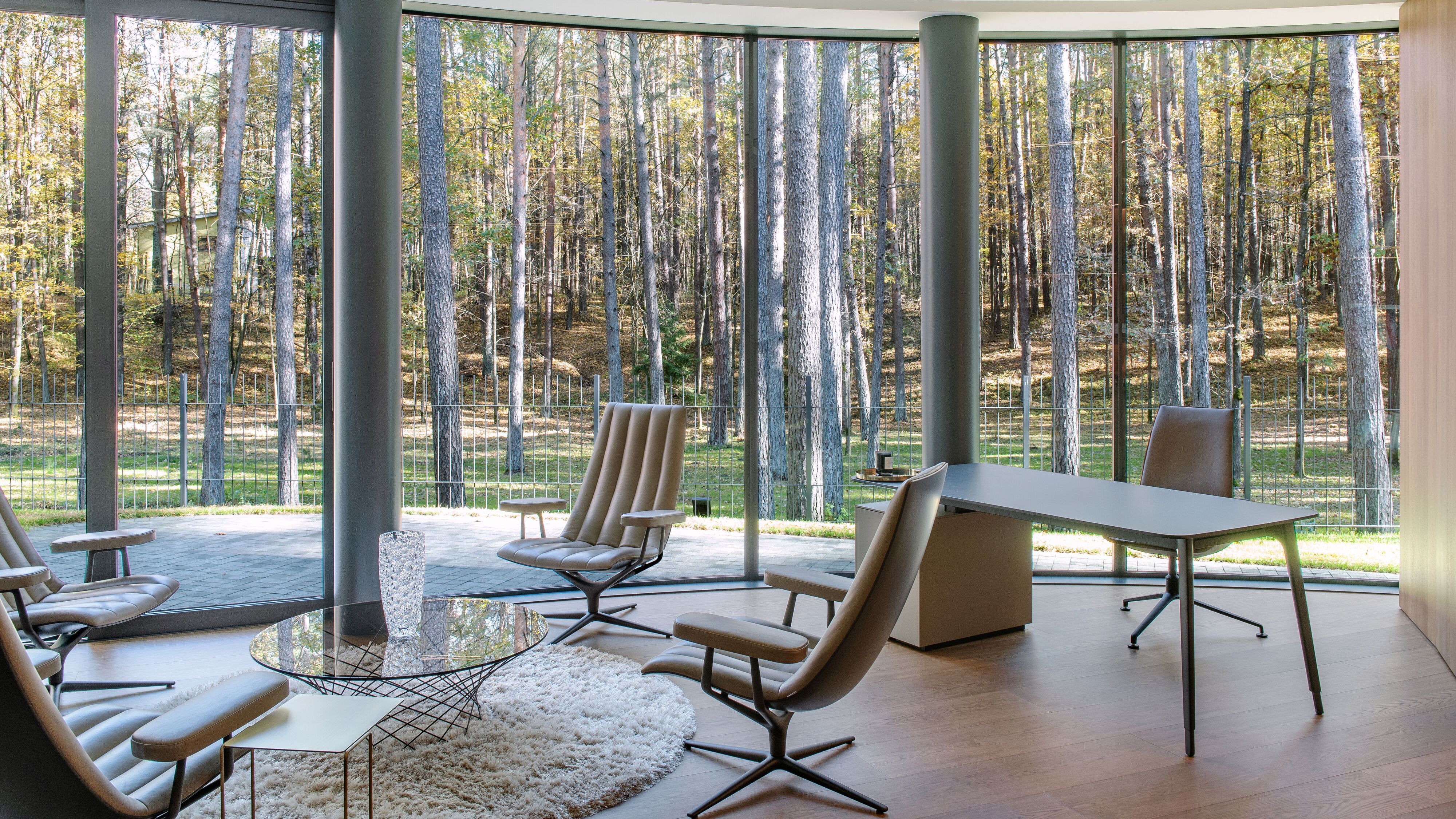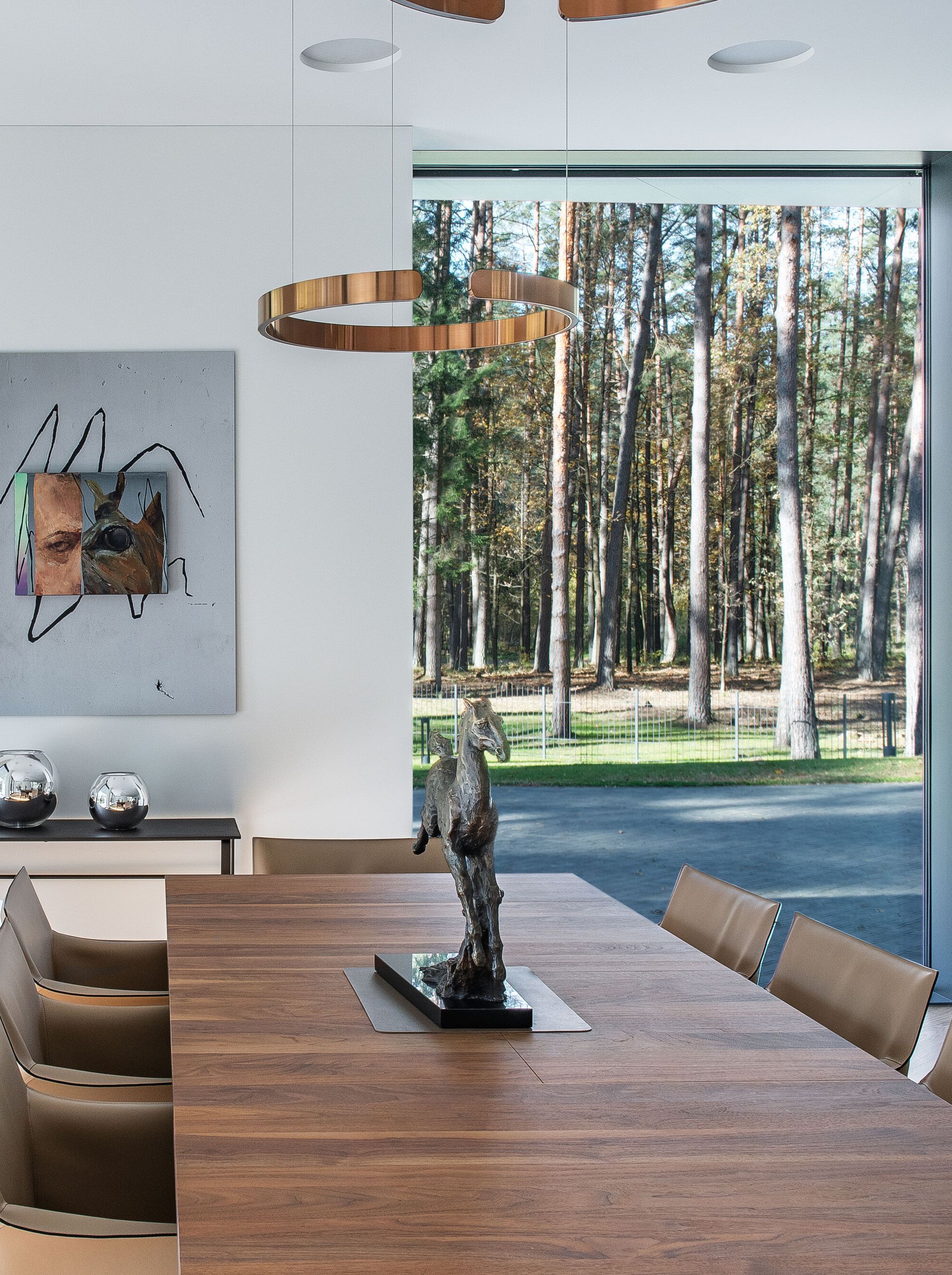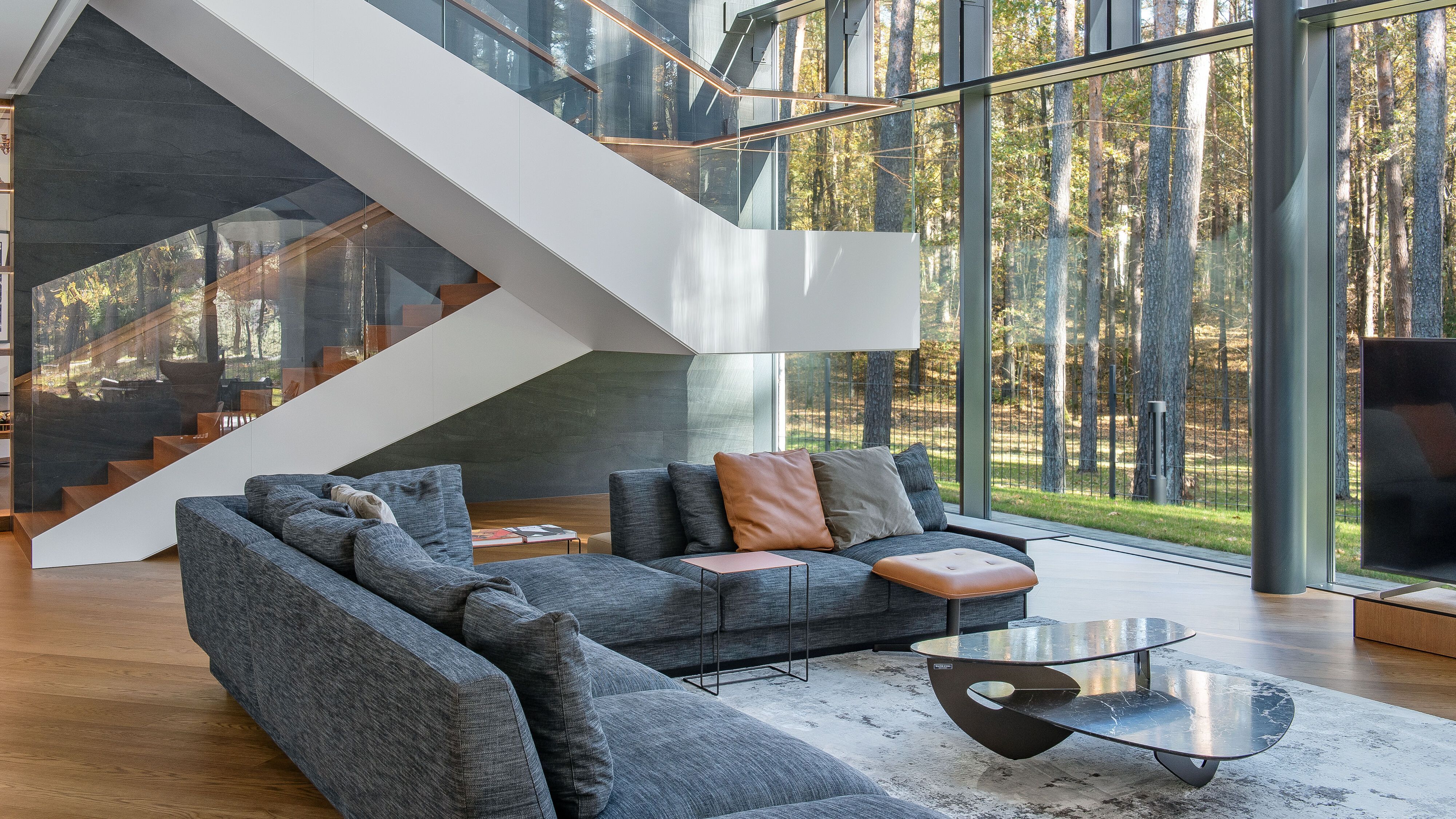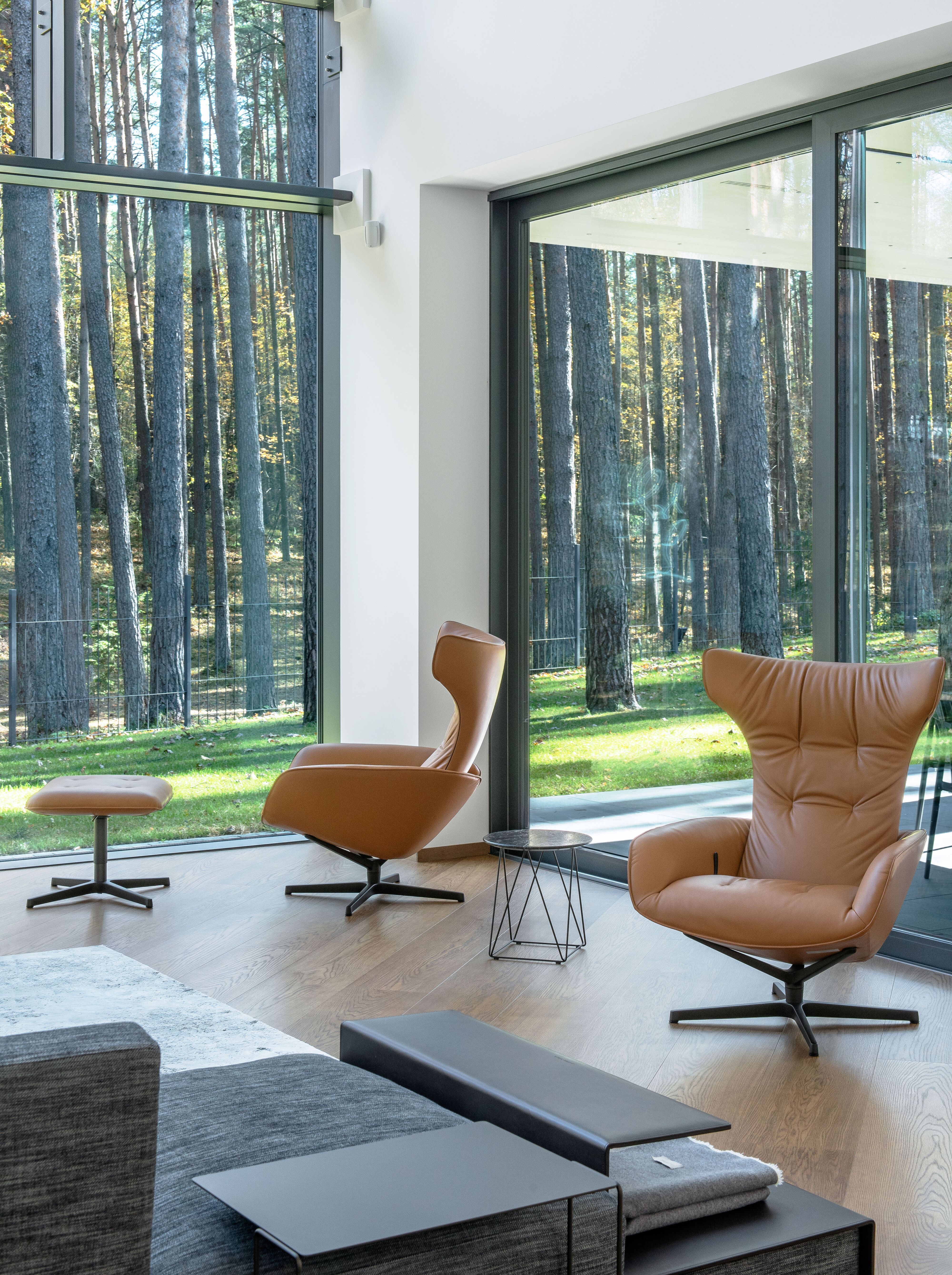 Experience the materials and furniture selected for an extraordinary, almost transparent villa surrounded by light woodlands.