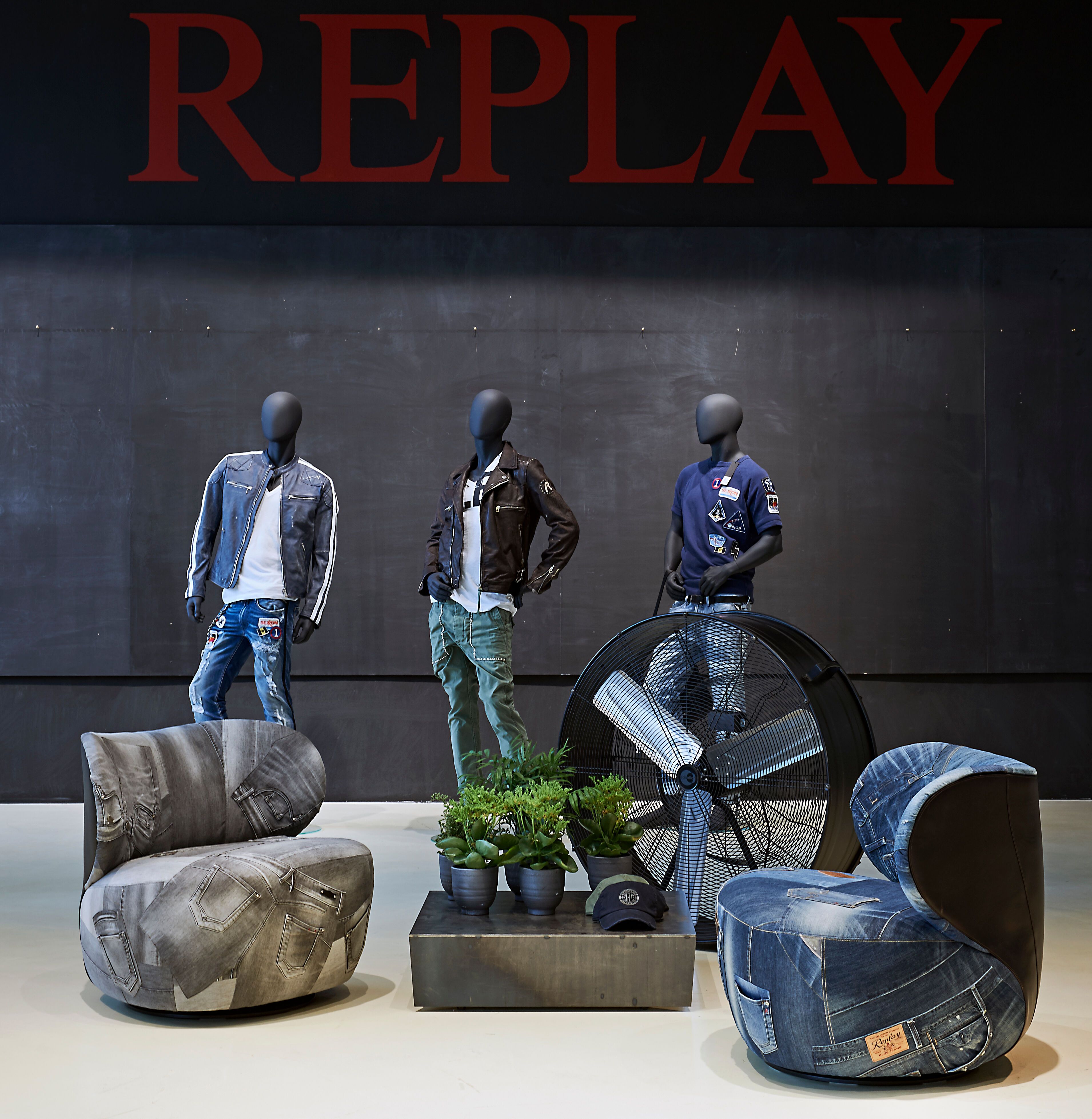 The Replay Store in Düsseldorf interprets the company's philosophy subtly and consistently throughout – with our upholstered furniture, which we have covered especially for the Italian label with its own legendary denim fabric.